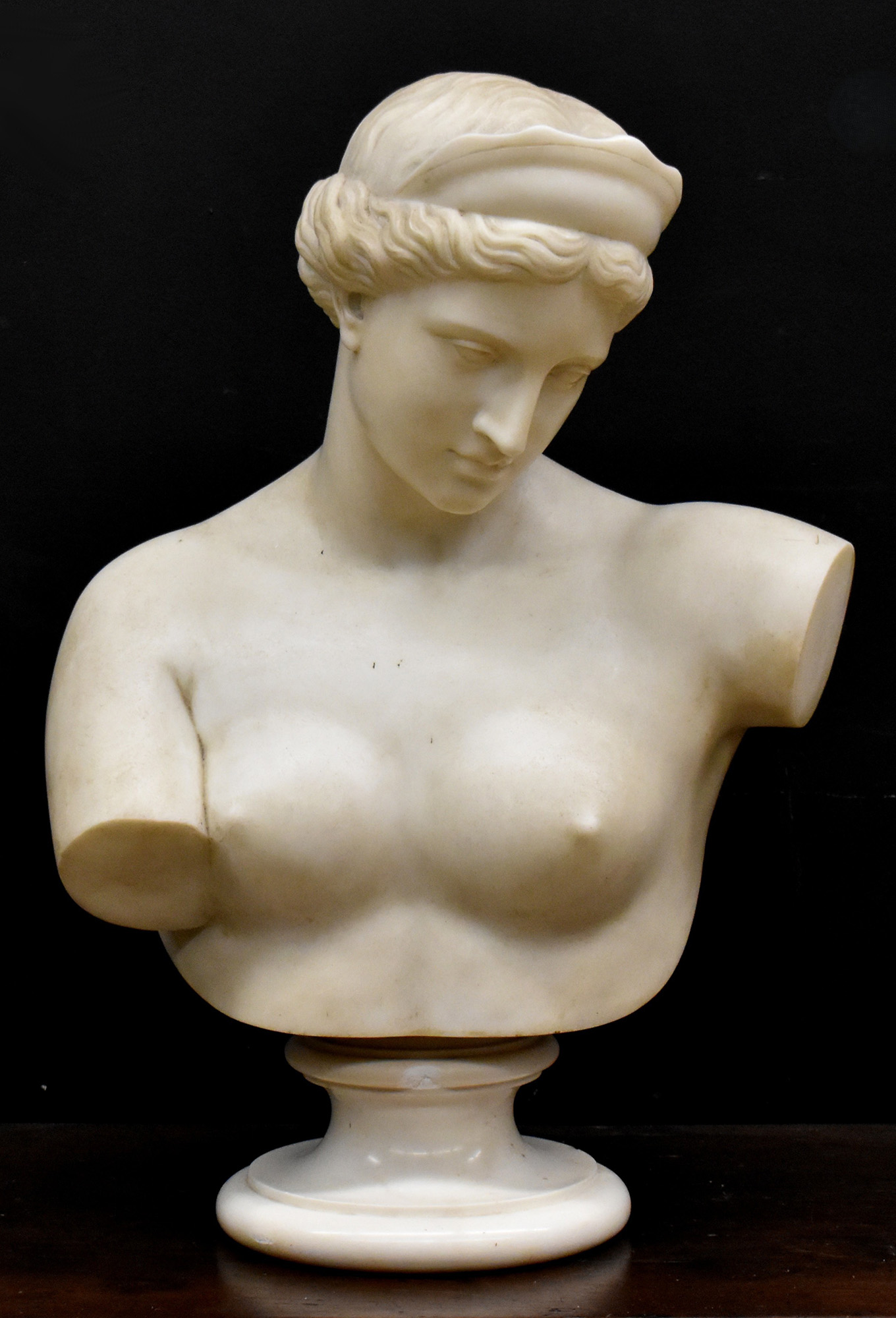 scultura in marmo bianco con base in marmo bianco (non coeva)