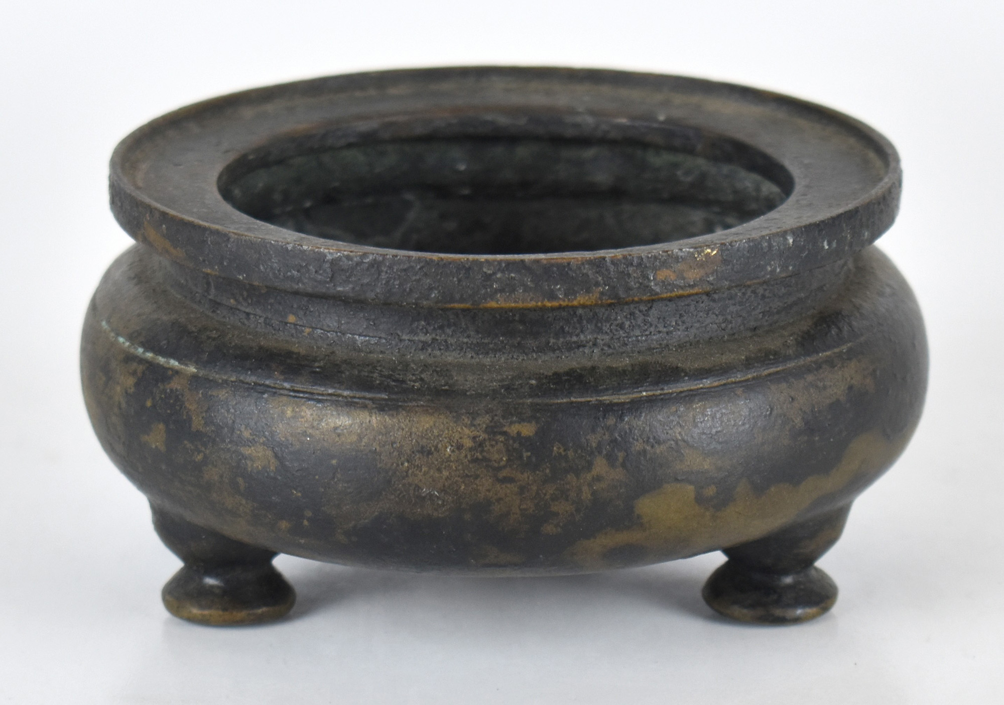 Previous Lot 0296 Next Casa d'Aste Martini - C.so Cavallotti 76, 18038 Sanremo DALL'ANTICO AL CONTEMPORANEO Sessione unica Thursday 23 October 2025 hours 15:00 (UTC +01:00) BRONZO Cina incensiere in bronzo con tre piedinicm.x h. 6 5cm x dm 12 5
