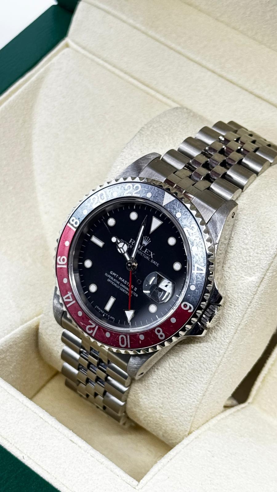 Marca Rolex Modello (Orologio) GMT-Master II Numero di referenza 16710 Carica Automatico Materiale della cassa Acciaio Materiale cinturino Acciaio Condizione Usato L'articolo presenta segni di usura lievi, come ad esempio graffi leggeri, ma non percepibili al tatto. No documenti originali Rolex, no box la scatola utilizzata solo per fotografie non in vendita Un anno di garanzia del negozio Carica Automatico anni 90 Materiale della cassa Acciaio Diametro 40 mm Impermeabile 10 ATM Materiale lunetta Acciaio Vetro Vetro zaffiro Quadrante Nero Numeri sul quadrante Senza numeri Cinturino Materiale cinturino Acciaio Colore cinturino Acciaio Chiusura Déployante Materiale chiusura Acciaio Funzioni Data, GMT - COMMISSIONE D'ASTA 25%
