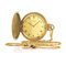 Cassa n. 2303 savonette in oro giallo 18 kt. Quadrante champagne con numeri romani applicati. Movimento con scappamento ad ancora, carica manuale. Quadrante e movimento firmati, cassa numerata. Completo di catena in oro giallo 18 kt.