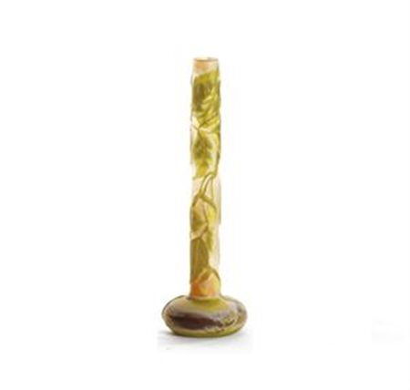 GALLE' EMILE Nancy 1846 - 1904 Vaso cilindrico con base a bulbo in vetro...