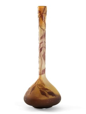 GALLE' EMILE Nancy 1846 - 1904 Grande vaso soliflore in vetro doppio,decoro...