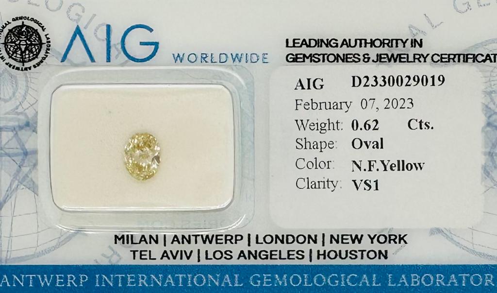 DIAMANTE NATURAL POLISHED 0,59 - COLORE GIALLO CHIARO - PUREZZA VS2 - CERTIFICATO IGI - UD30120-1 - COMMISSIONE D’ASTA 25%