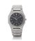 Cassa in acciaio con fondello a vite, lunetta ottagonale e vetro zaffiro. Quadrante nero con indici applicati, secondi al centro e data al 3. Movimento al quarzo. Bracciale in acciaio. Quadrante, cassa, movimento e bracciale firmati.