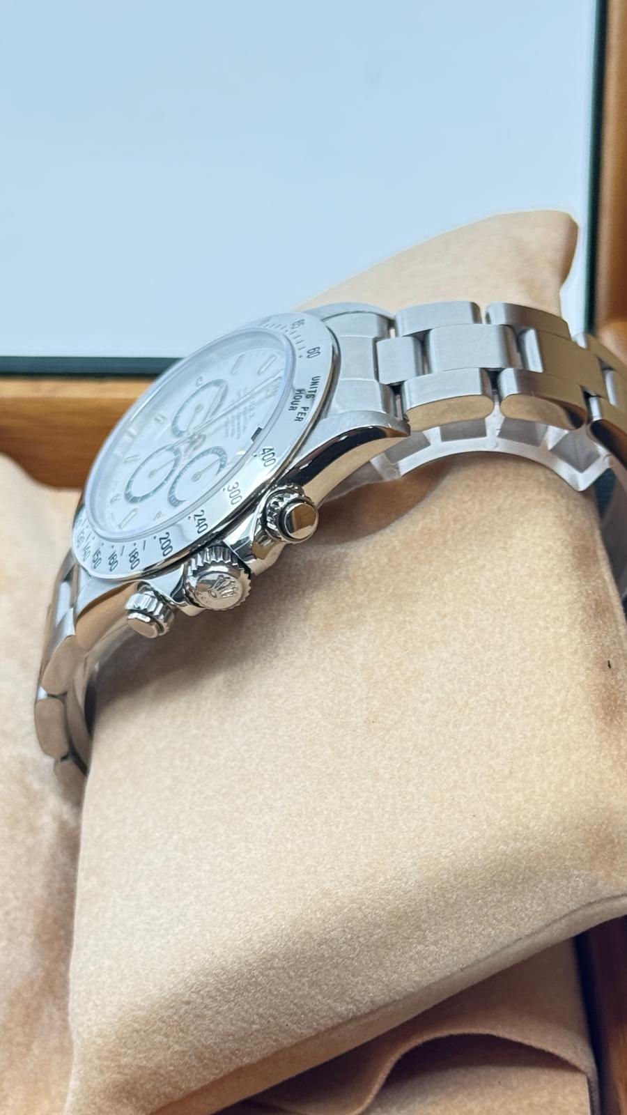 Marca Rolex Modello (Orologio) Daytona 6 rovescio Numero di referenza 16520 Carica Automatico Materiale della cassa Acciaio Materiale cinturino Acciaio Anno di produzione 1992 Condizione ottimo Corredo documenti originali, no box Carica Automatico Movimento zenith el primero Materiale della cassa Acciaio Diametro 40 mm Impermeabile 10 ATM Materiale lunetta Acciaio Vetro Vetro zaffiro Quadrante bianco Numeri sul quadrante Senza numeri Cinturino Materiale cinturino Acciaio Colore cinturino Acciaio Chiusura Déployante Materiale chiusura Acciaio Un anno di garanzia del negozio - COMMISSIONE D’ASTA 25%