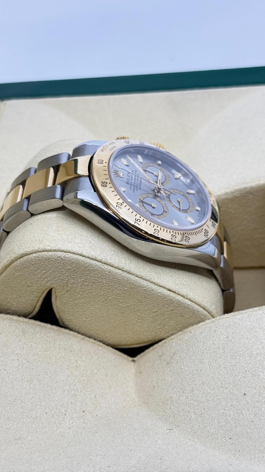 Marca Rolex Modello (Orologio) Daytona Numero di referenza 116523 Carica Automatico Materiale della cassa Oro/Acciaio Materiale cinturino Oro/acciaio Anno 2005 documenti originali Rolex, no box, la scatola viene utilizzata solo per fotografie non è in vendita Calibro Carica Automatico Cassa Materiale della cassa Oro/Acciaio Diametro 40 mm Impermeabile 10 ATM Materiale lunetta Oro giallo Vetro Vetro zaffiro Cinturino Materiale cinturino Oro/acciaio Colore cinturino Oro/acciaio Chiusura Déployante Materiale chiusura Oro/Acciaio Funzioni Cronografo - COMMISSIONE D’ASTA 25%