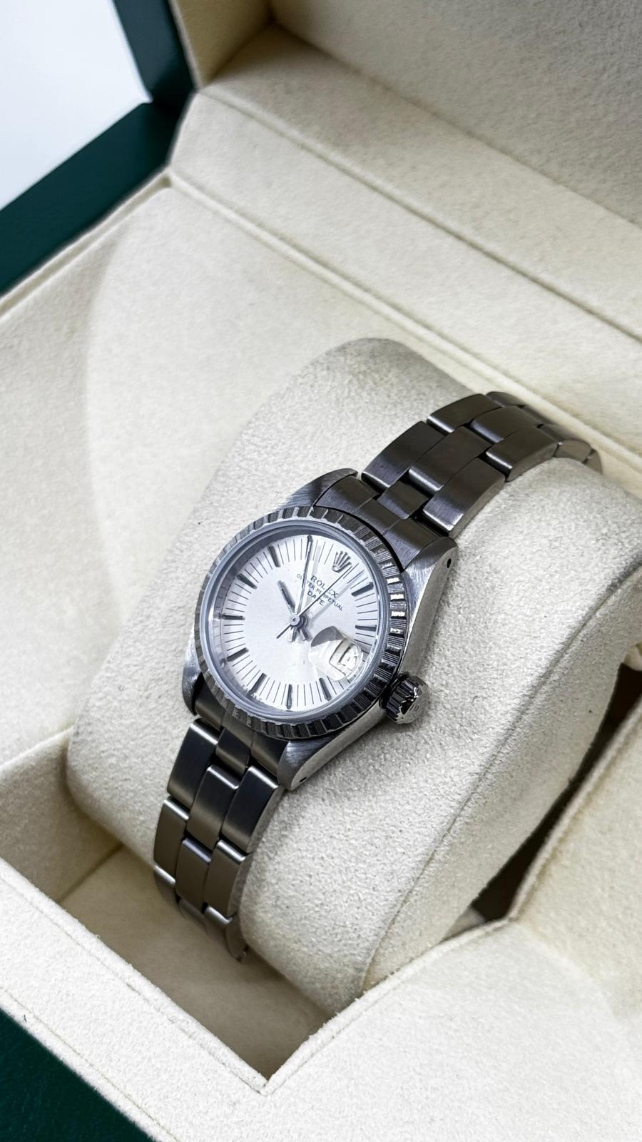 Marca Rolex Modello (Orologio) Oyster Perpetual Lady Date Numero di referenza 69240 Carica Automatico Materiale della cassa Acciaio Materiale cinturino Acciaio Anno di produzione 1988 Condizione Usato (Ottimo) L'articolo presenta segni di usura lievi, come ad esempio graffi leggeri, ma non percepibili al tatto. Ultima revisione 27 marzo 2025 Revisione interna Corredo Senza scatola originale, con documenti originali Carica Automatico Materiale della cassa Acciaio Diametro 26 mm Impermeabile 10 ATM Materiale lunetta Acciaio Vetro Vetro zaffiro Materiale cinturino Acciaio Colore cinturino Acciaio Chiusura Déployante Materiale chiusura Acciaio Funzioni Data - COMMISSIONE D’ASTA 25%