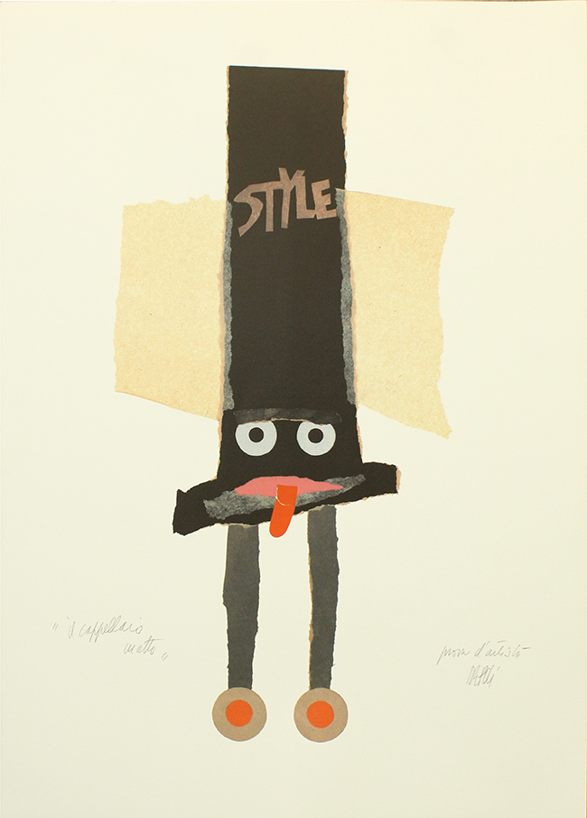 FABIO DE POLI, "Il Cappellaio Matto", litografia su cartoncino, cm 100x70, esemplare PA. Al fronte: in basso a sinistra titolo, in basso a destra tiratura e firma. Opera senza cornice.