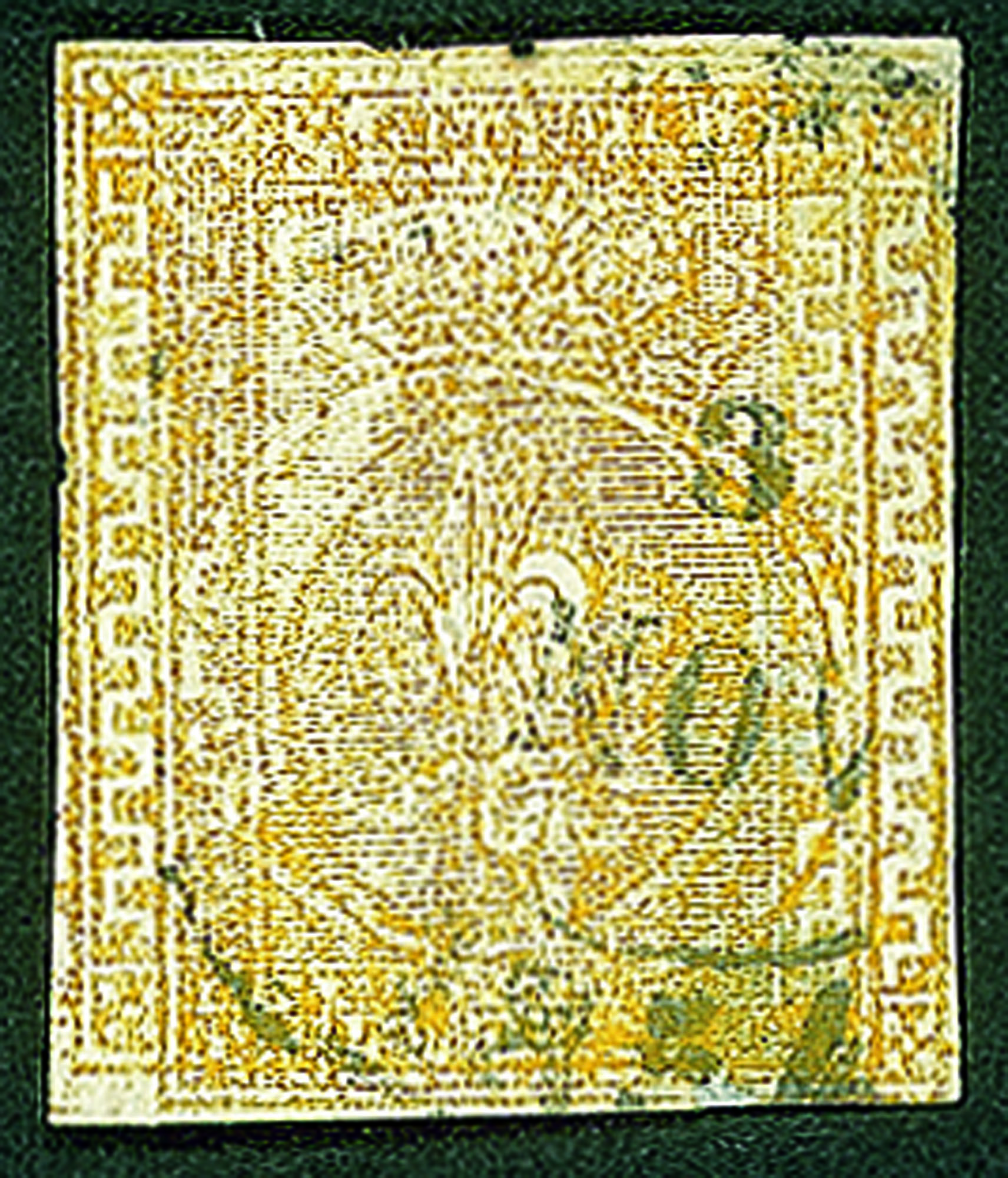 Con doppia stampa molto evidente e discosta, annullo di PIACENZA 3 NOV.1854, dal cert. E.Diena '¿ dei tre soli esemplari noti di questa varietà, è quello in cui lo spostamento fra le due stampe è più forte.' - cert. Raybaudi e E. Diena