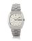 Cassa tonneau in acciaio con vetro zaffiro. Quadrante argentato con indici applicati, secondi al centro, finestrelle per giorno e data al 3. Movimento al quarzo. Bracciale in acciaio. Quadrante firmato e cassa numerata.