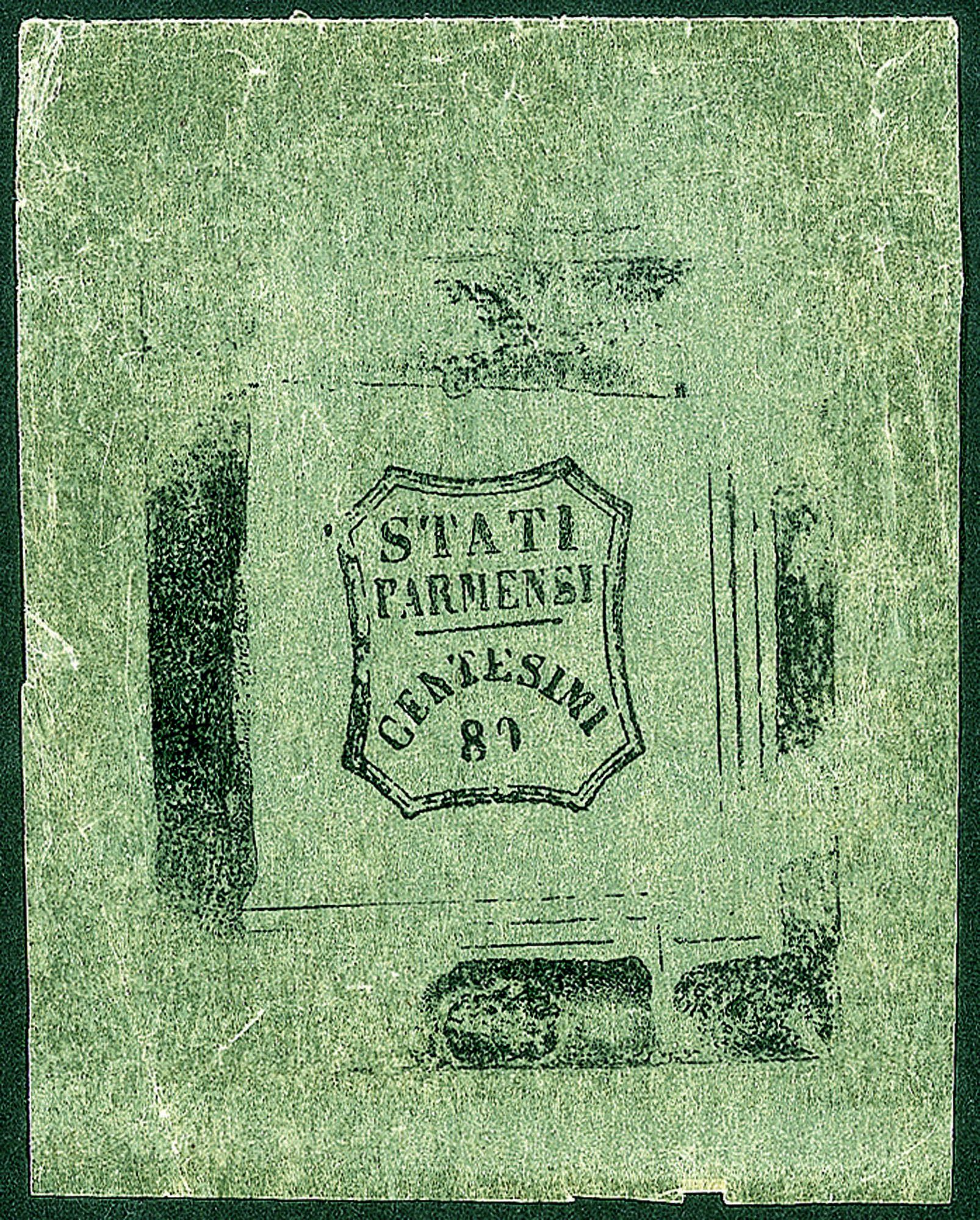 Antichi Stati Italiani - Parma - Falso Desperati c.80In nero su carta trasparente con evidente riquadro di clichè sui quattro lati anche'esso in colore nero
