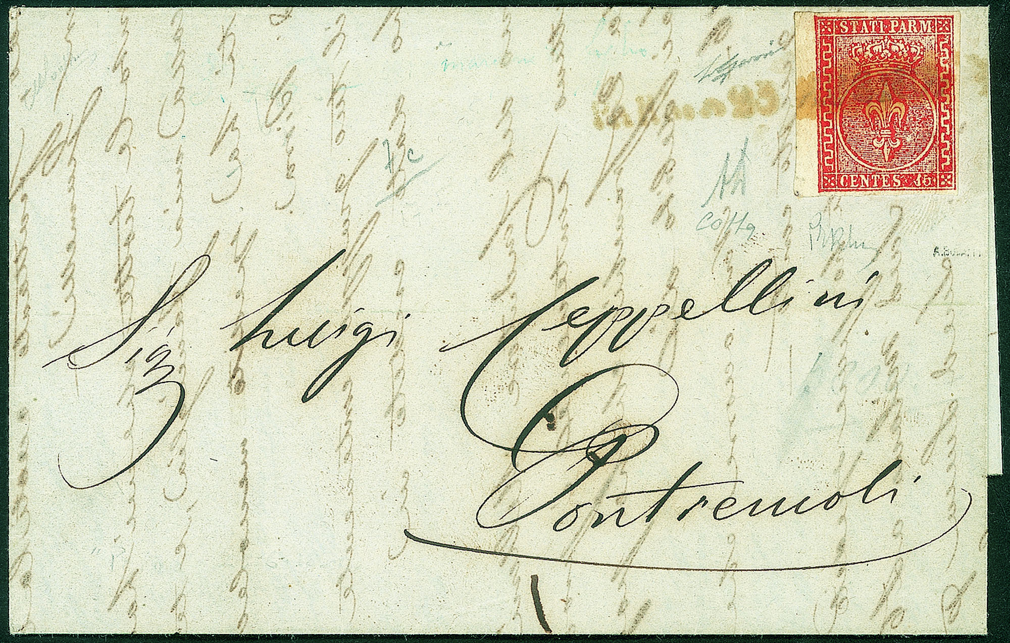 Antichi Stati Italiani - Parma - Lettera con c.15 vermiglio, bordo di foglio