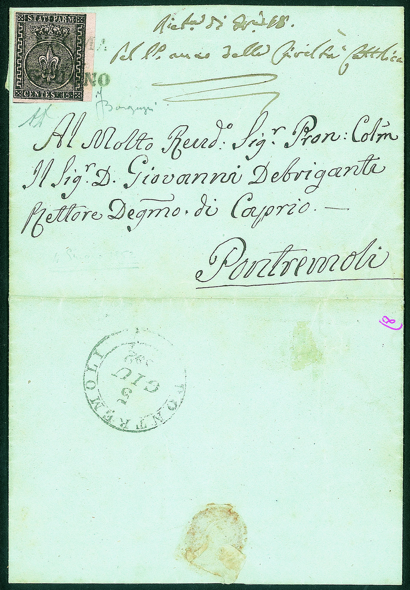Lot 155 | Antichi Stati Italiani - Parma - Lettera con c.15 rosa annullato con lineare su tre righe PARMA 4 GIUGNO del 1852