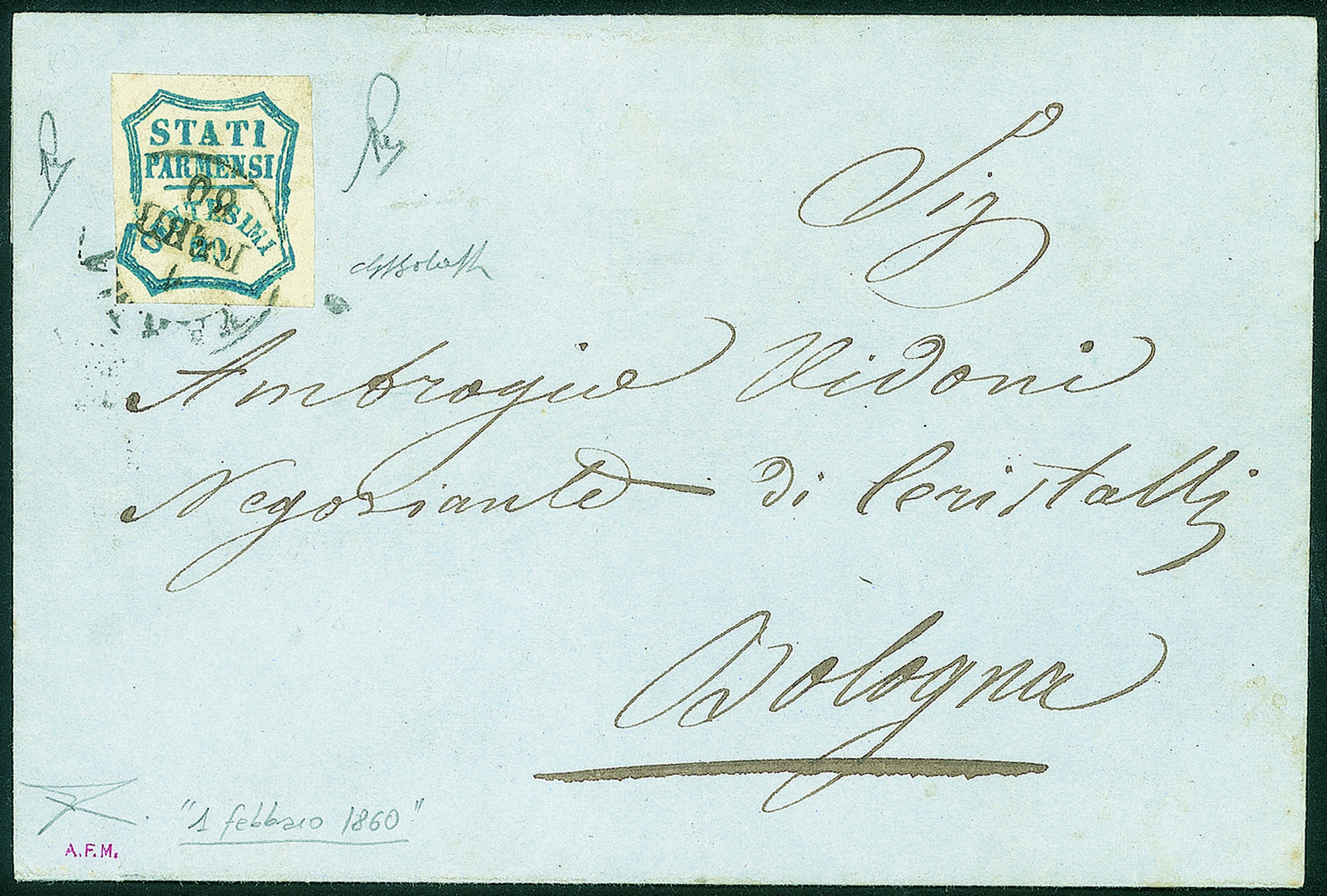 Lot 202 | Antichi Stati Italiani - Parma - Lettera con c.20 azzurro da PARMA 1 FEBB.60 per Bologna
