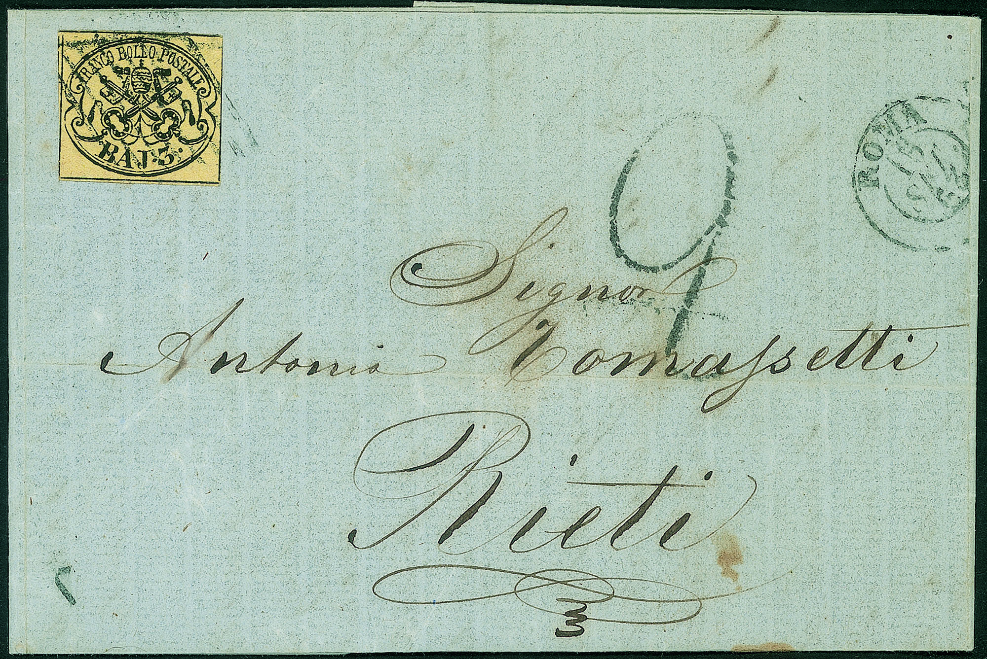 Antichi Stati Italiani - Stato Pontificio - Lettera affrancata con 3 baj (4A)