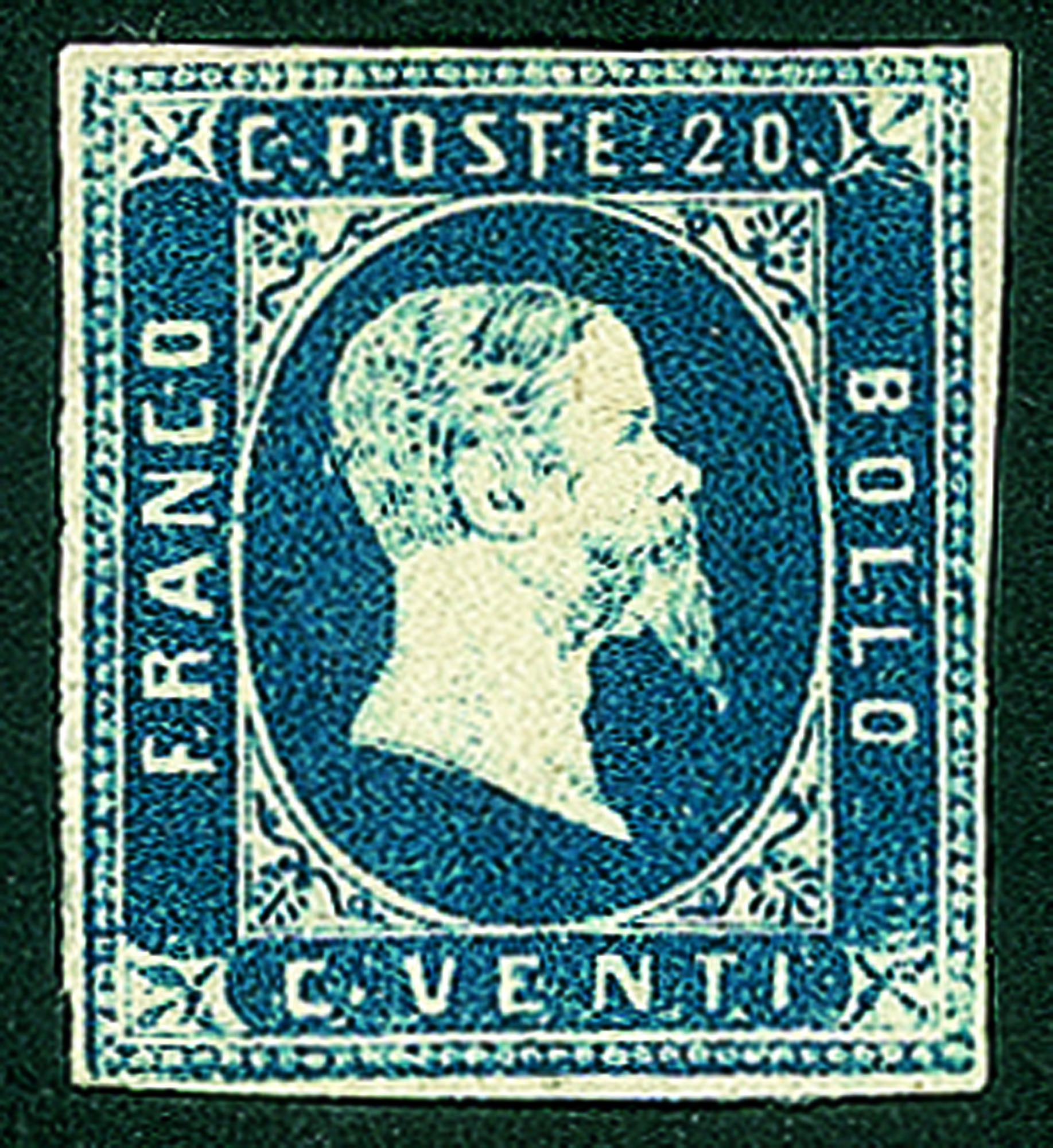 Antichi Stati Italiani - Sardegna - 1851 c.20 azzurro scuro, prima tiratura (2a)