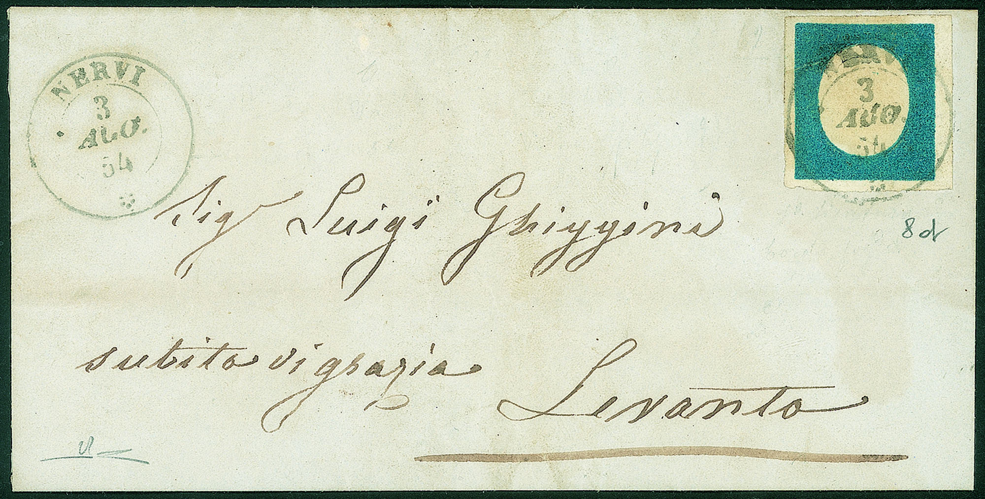 Lot 227 | Antichi Stati Italiani - Sardegna - Busta affrancata con 20 cent azzurro verdastro (8d)