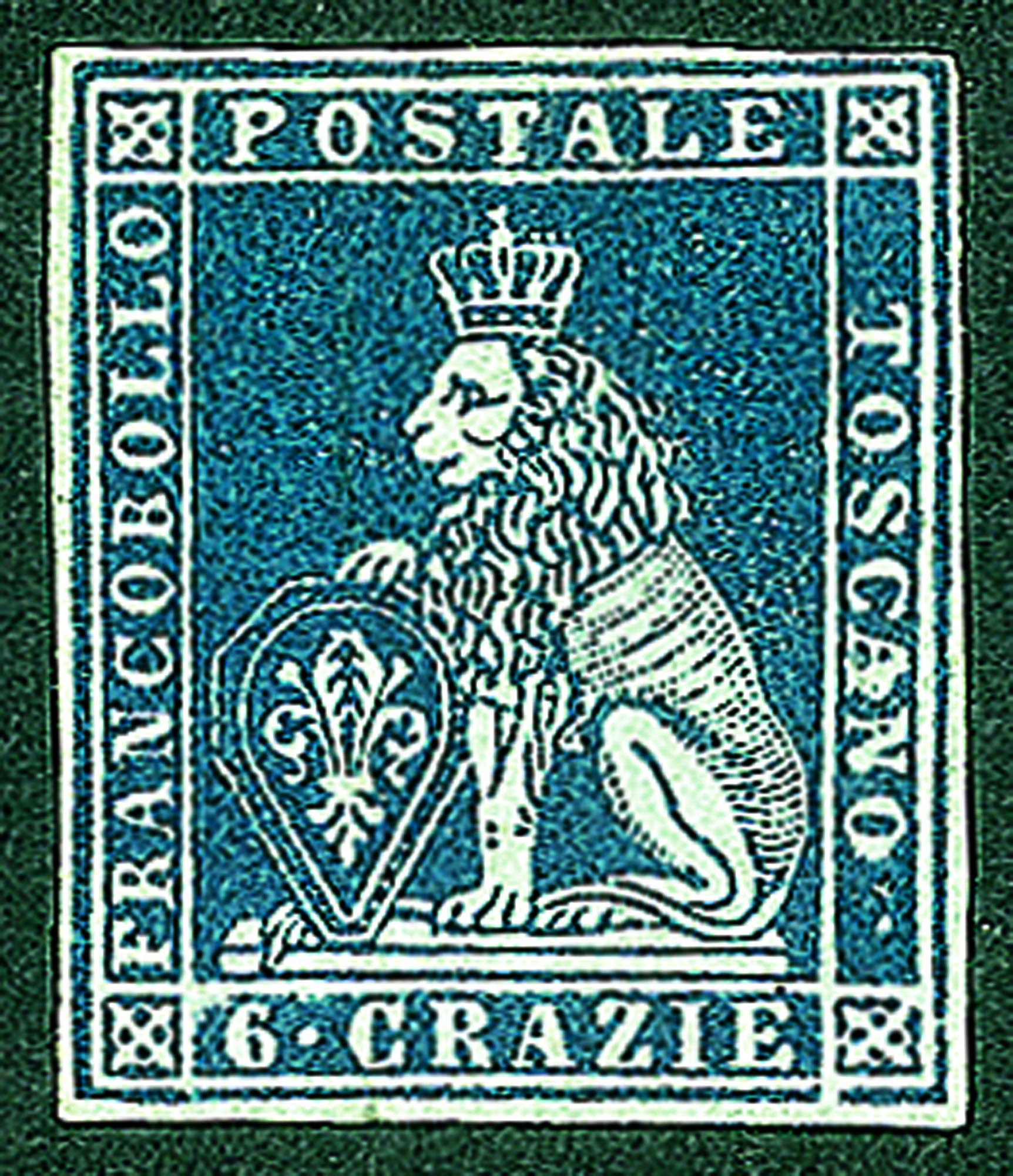 Antichi Stati Italiani - Toscana - 1851 cr.6 indaco su azzurro (7a)Nuovo con gomma originale, cert A.Diena