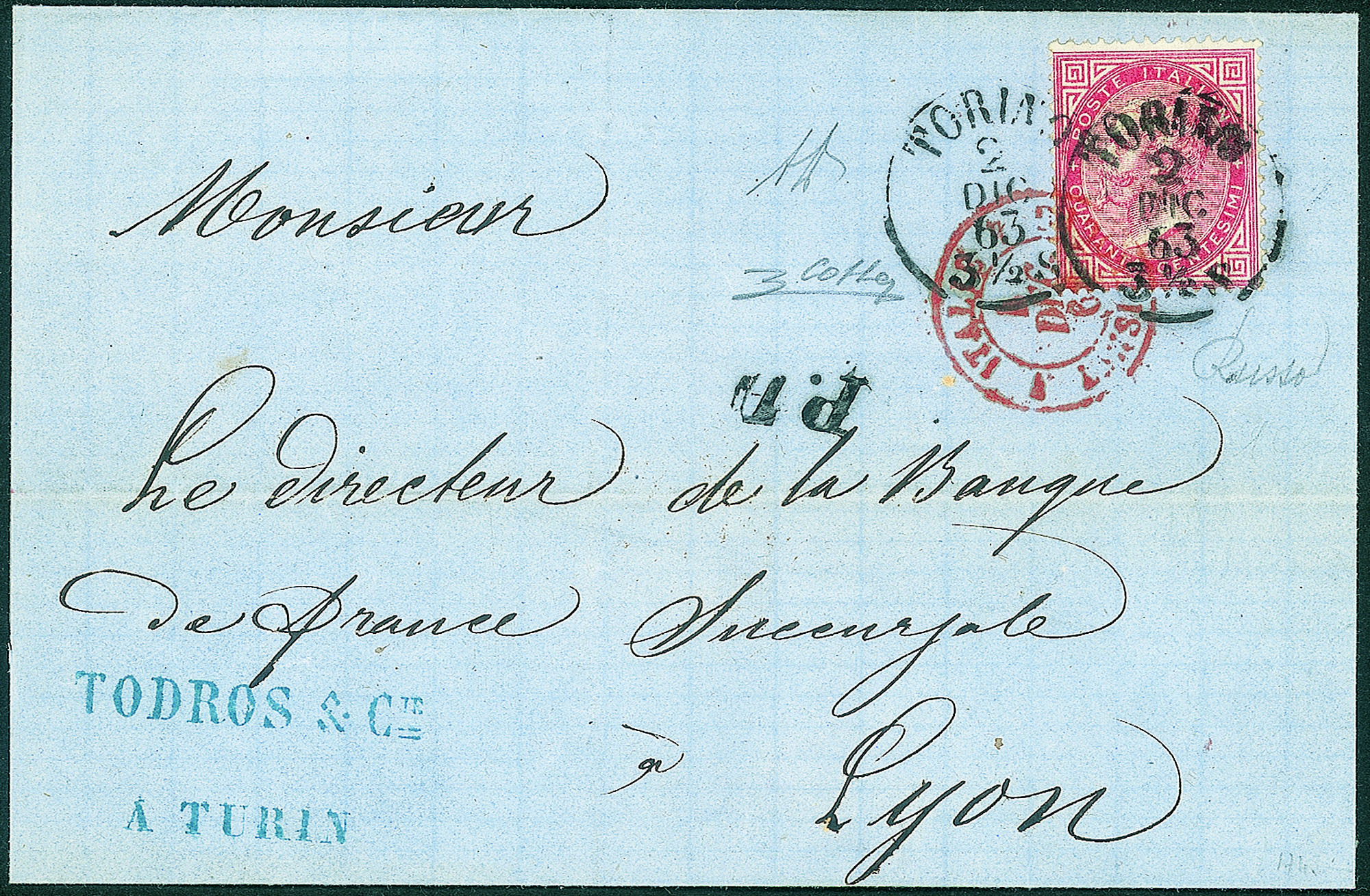 Lot 316 | Regno - Vittorio Emanuele II - Secondo giorno d'uso - Lettera con 40 cent (L20)
