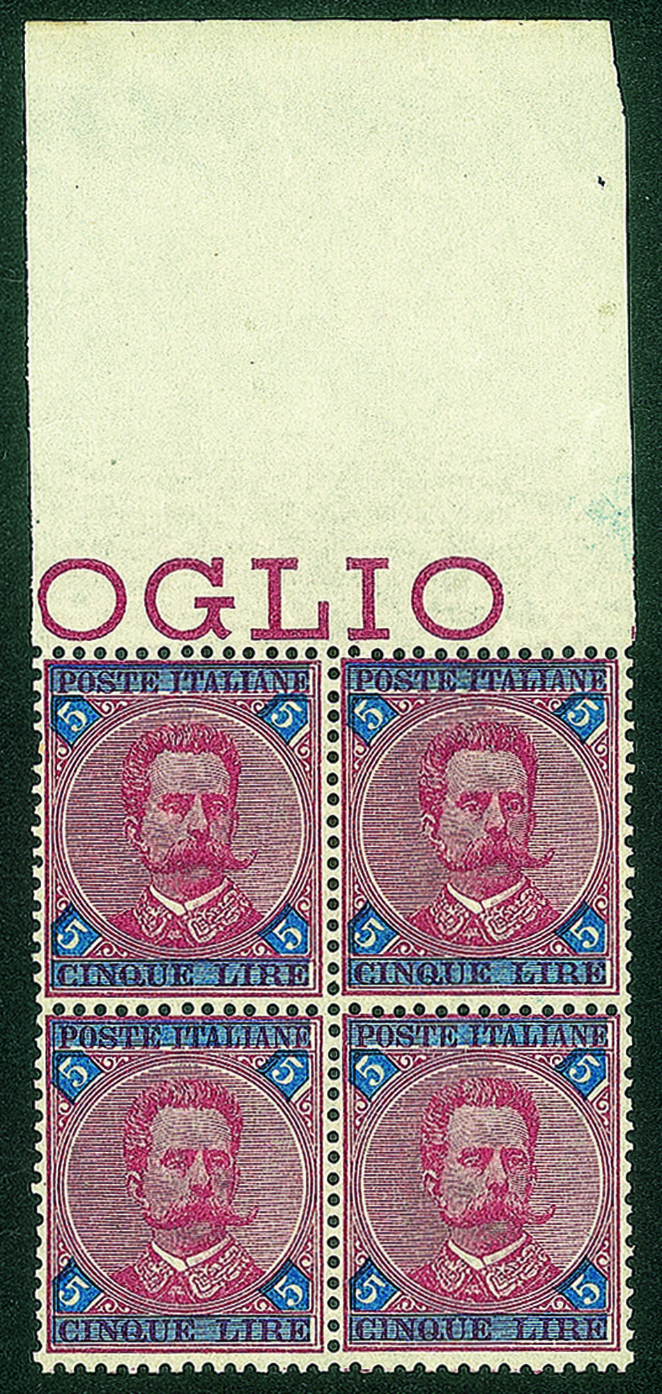 Regno - Umberto I - 1891 - Quartina del 5 lire Umberto (64)Con bordo di foglio superiore - gomma integra