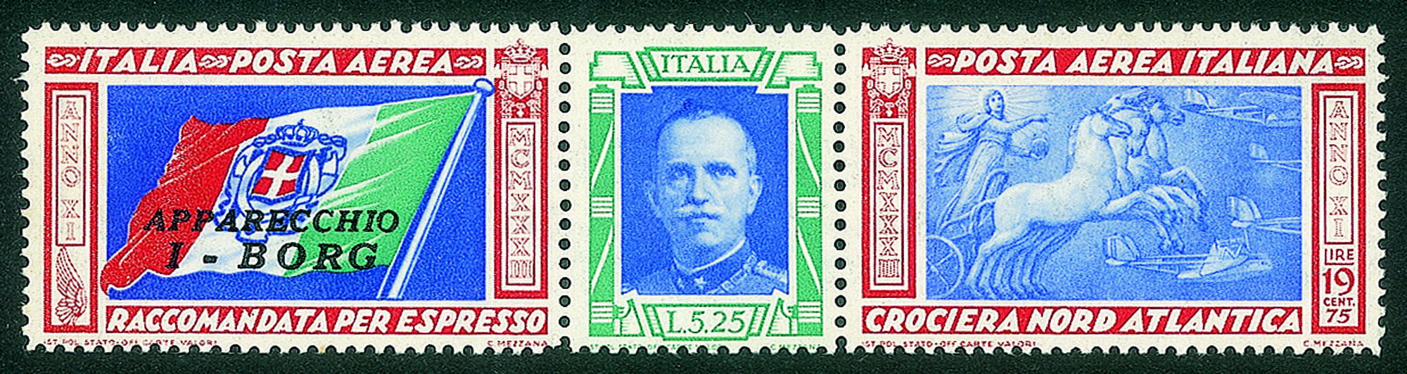 Regno - Vittorio Emanuele III - 1933 - Trittico - I-BORG (51Da) con varietà ciuffoGomma integra - Bolaffi