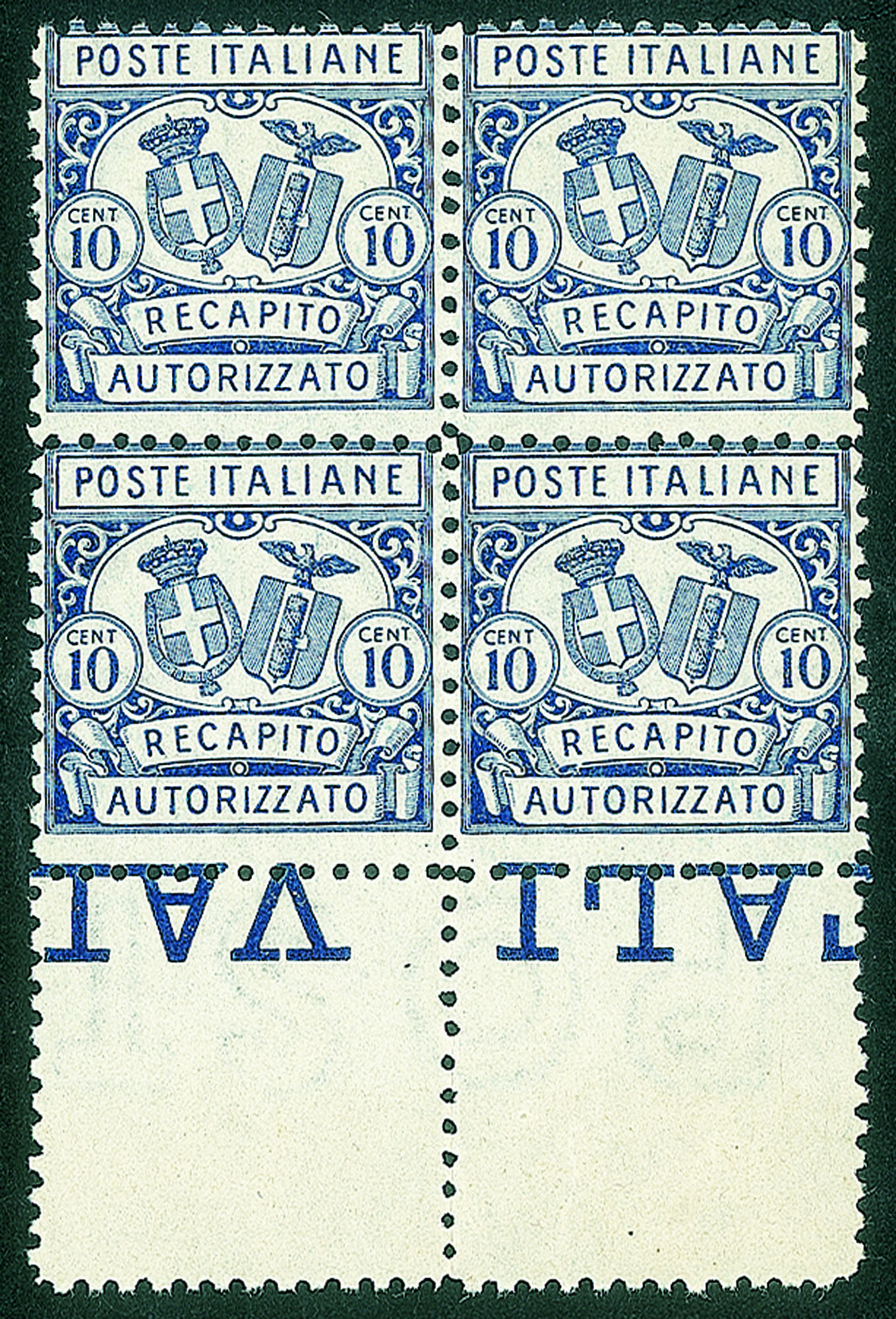 Regno - Vittorio Emanuele III - 1928 - Recapito Autorizzato - Quartina del 10 cent dentellato 11 (1)Bordo di foglio - gomma integra