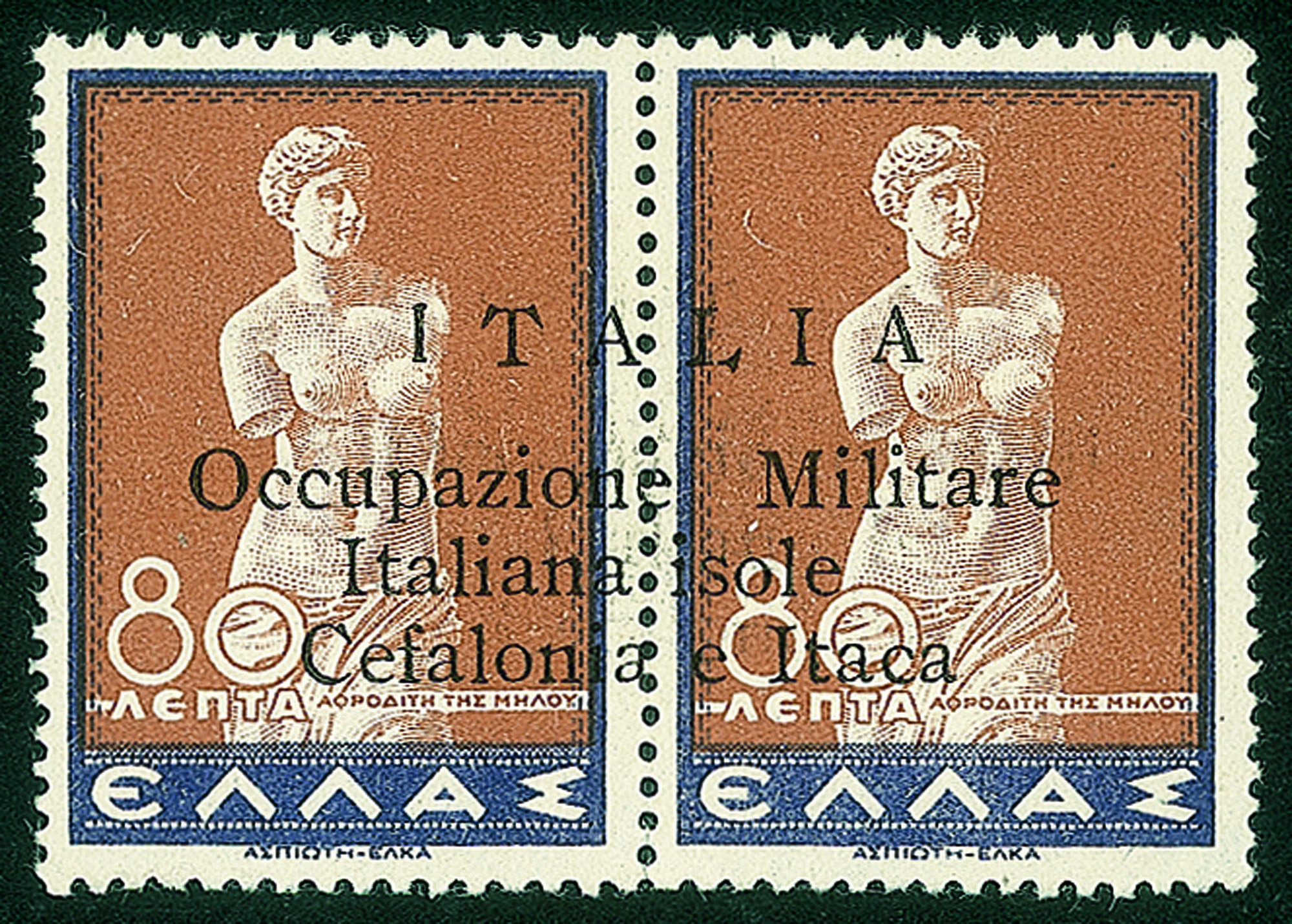 Occupazioni II guerra mondiale - 1941 - 80 + 80 lepta (16 varietà f)Gomma integra - leggere tracce di doppia soprastampa (pos. 6) - non catalogato - cert. AG