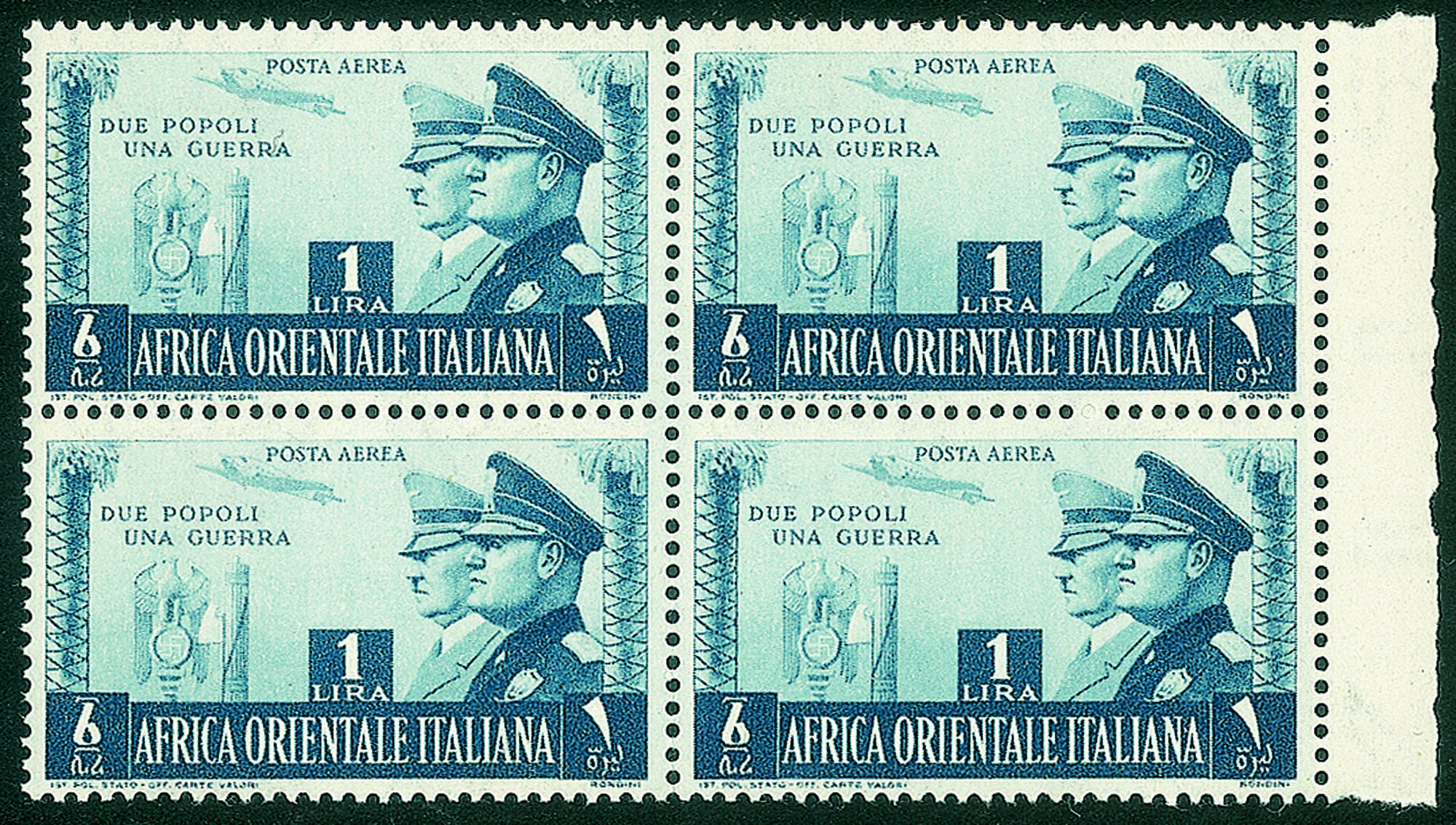 Colonie - 1941 - 1 lira Fratellanza d'Armi (20)In quartina - gomma integra