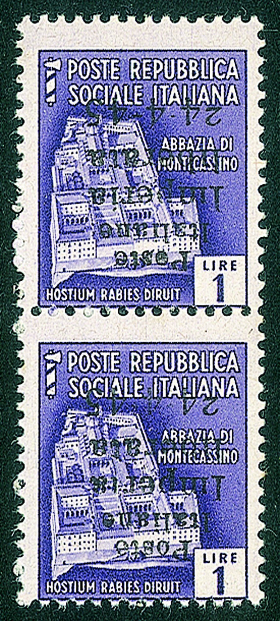 Lot 459 | Emissioni CLN - 1945 - 1 lira (8a) coppia verticale con soprastampe capovolte