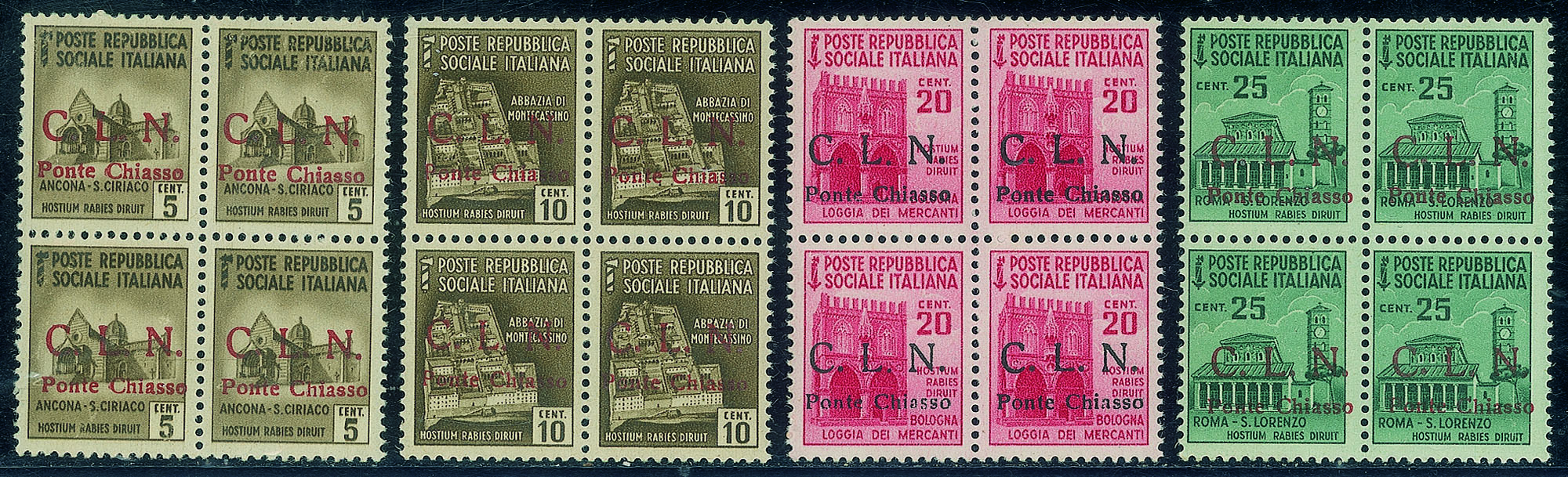 Emissioni CLN - 1945 - Monumenti Distrutti - serie completa in quartine - 10 valori (1/10)