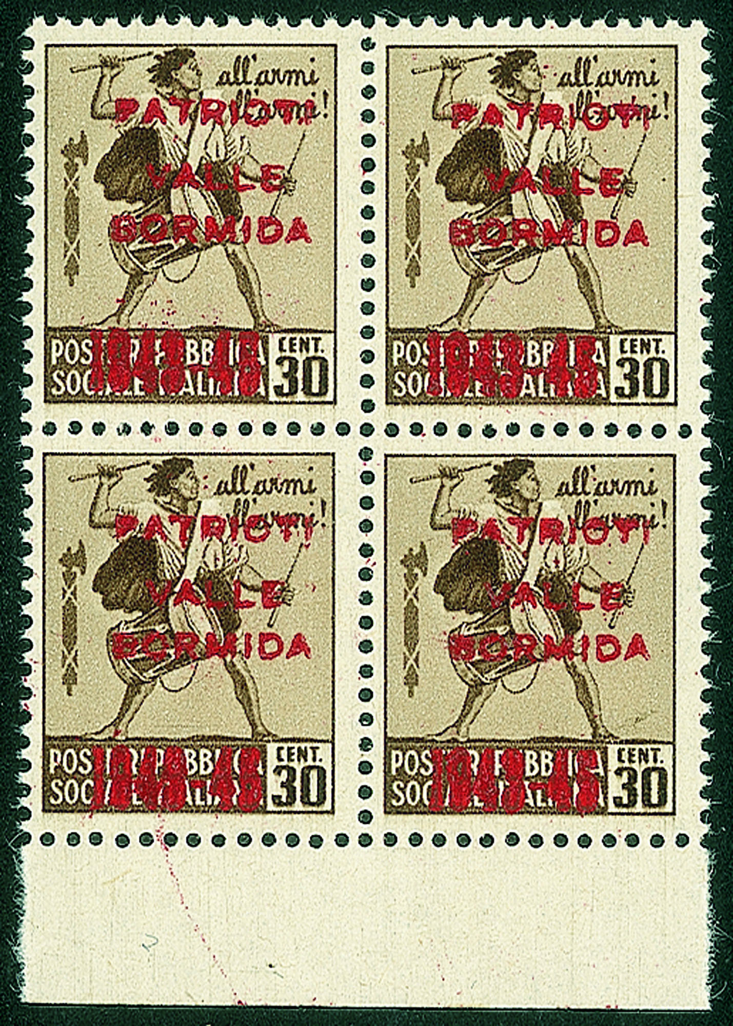 Emissioni CLN - 1945 - 30 cent (4A) - quartina bordo foglio