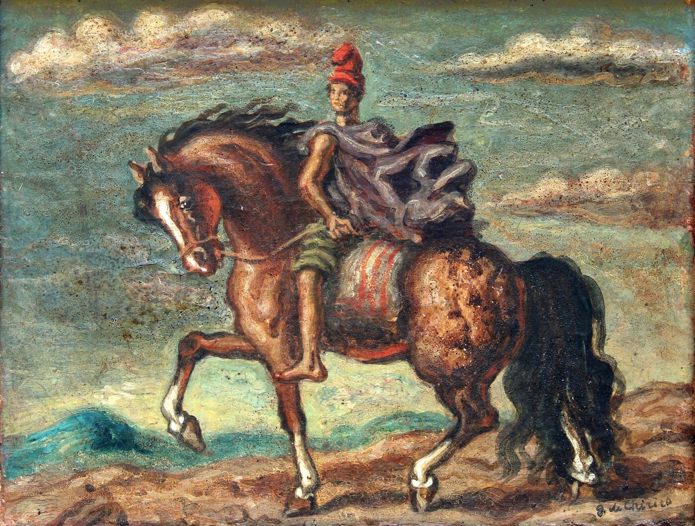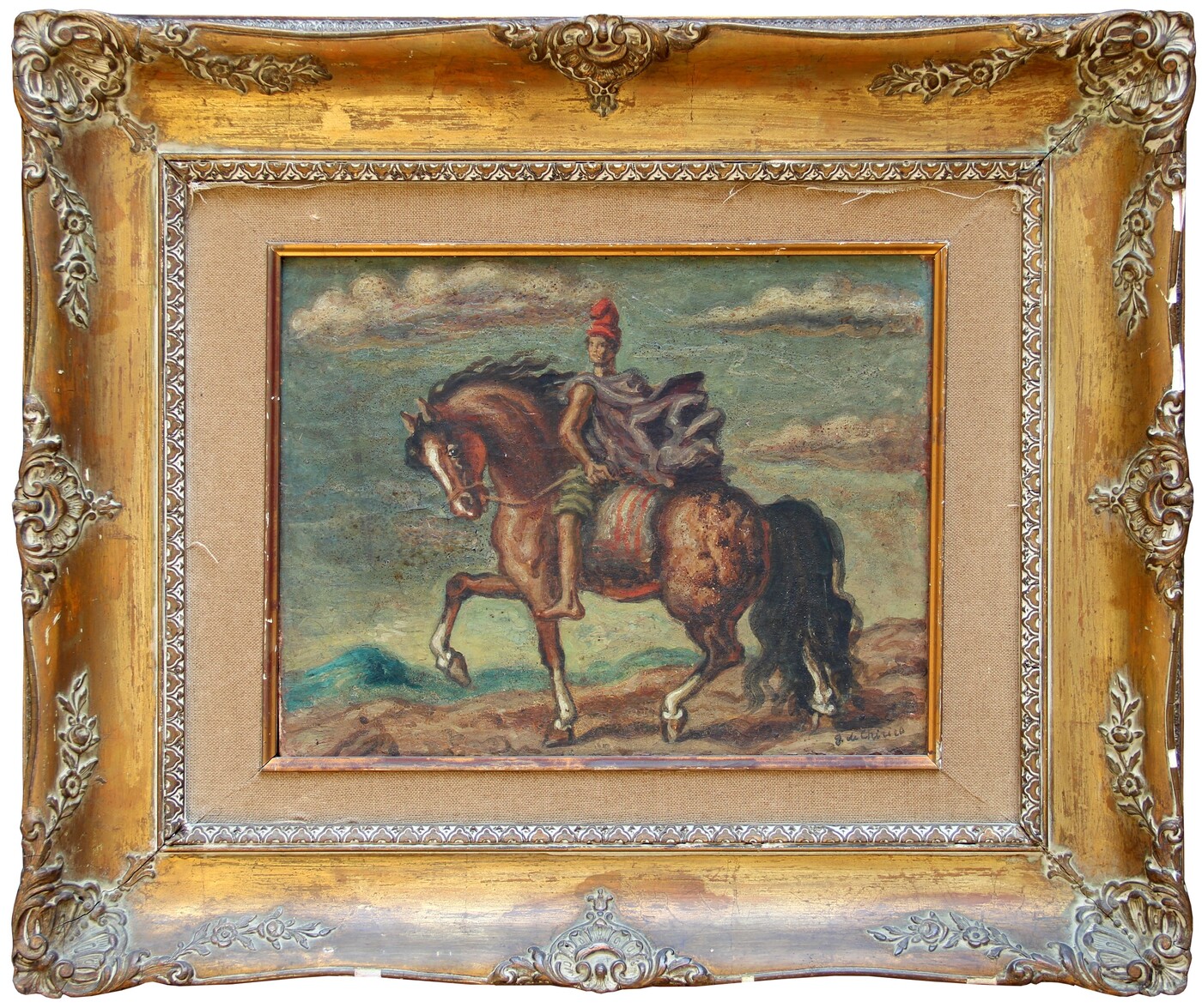 DE CHIRICO Giorgio, Cavaliere frigio, Cavaliere frigio, 1938-1939, olio su tela, cm 27,5x35,5