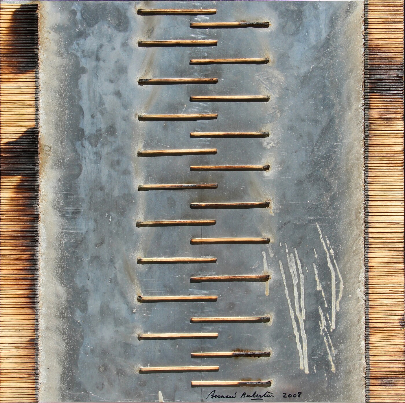 AUBERTIN Bernard, Dessin de feu sur aluminium, Dessin de feu sur aluminium, 2008, fiammiferi bruciati su alluminio, cm 50x50