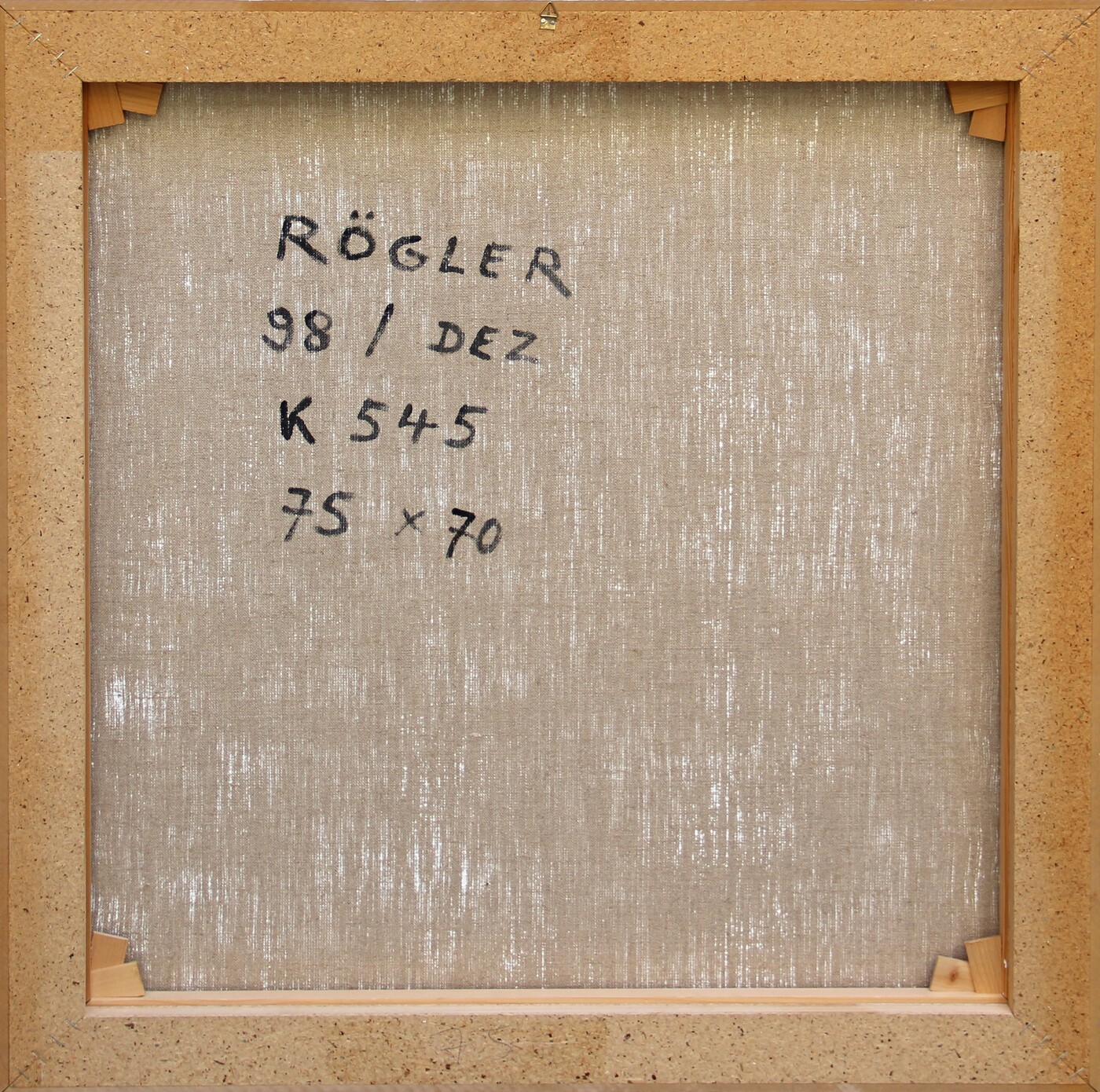 Firma, data, titolo, dimensioni "Rögler, 98/dez, K 545, 75x70" (al retro)