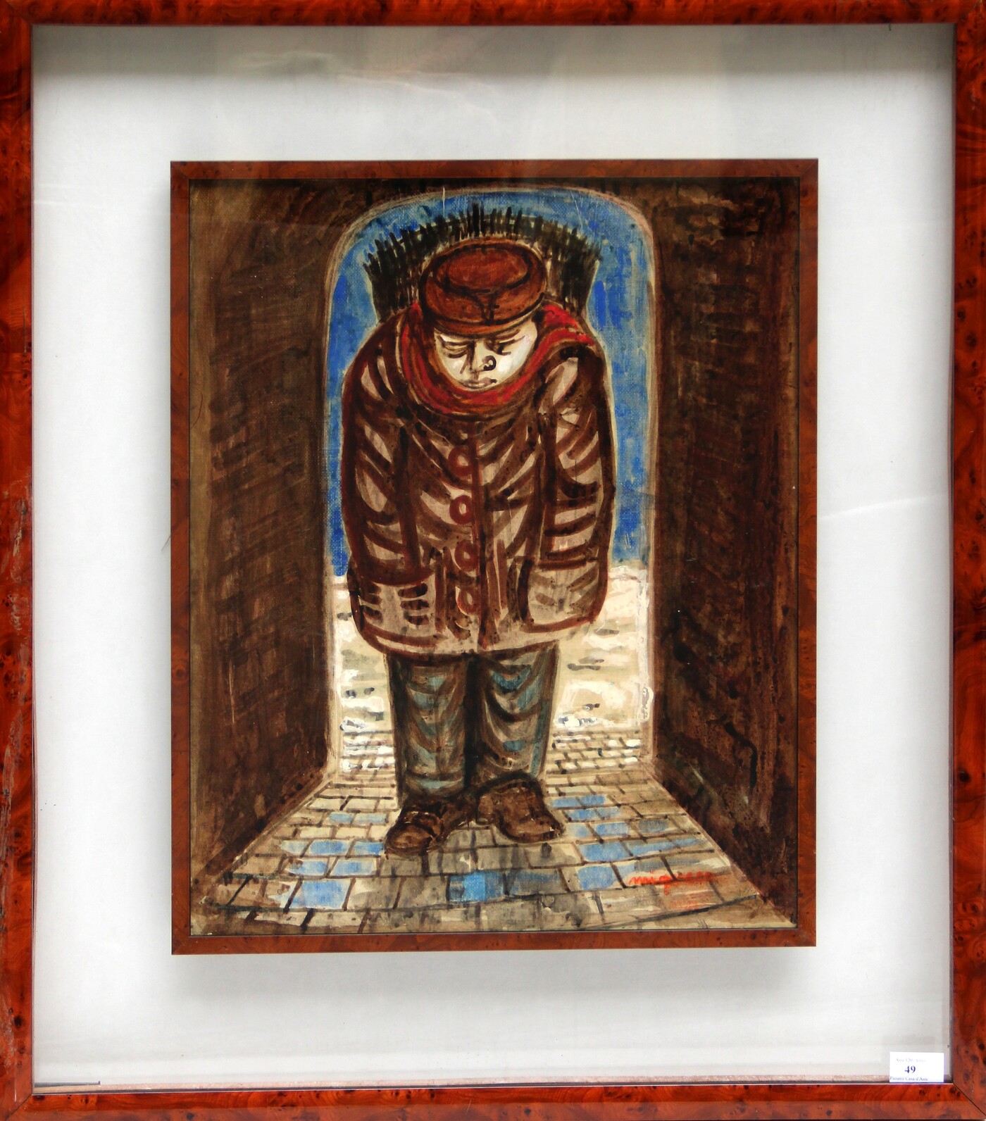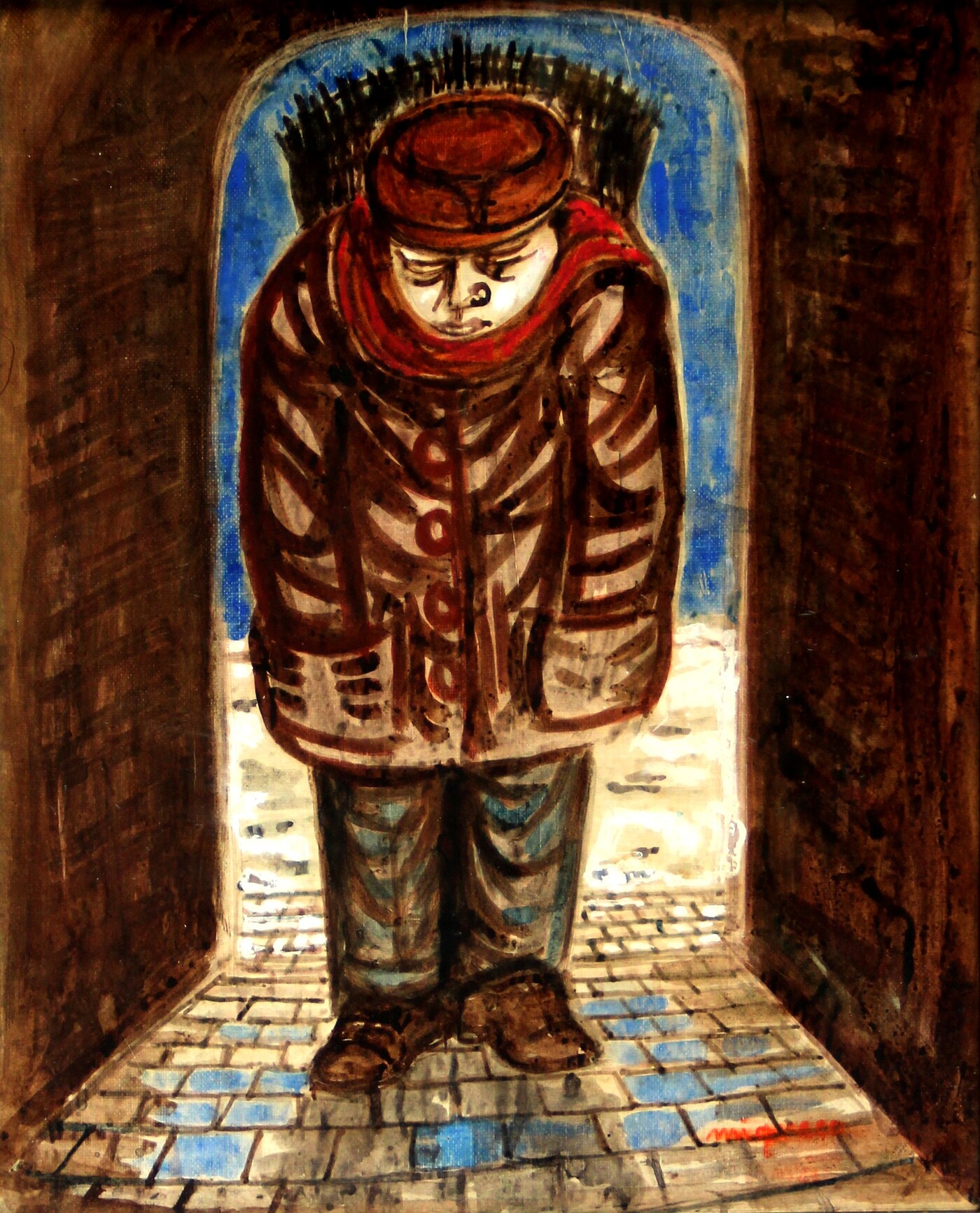 MIGNECO Giuseppe, Ragazzo con la gerla, Ragazzo con la gerla, , tecnica mista su cartoncino applicato su tela, cm 58,5x46,5