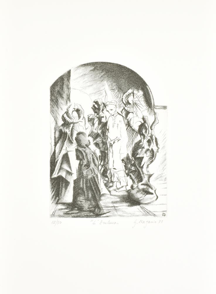 Gaudenzio Nazario L'ESCLUSO incisione su carta, battuta cm 24,5x18,5, su...
