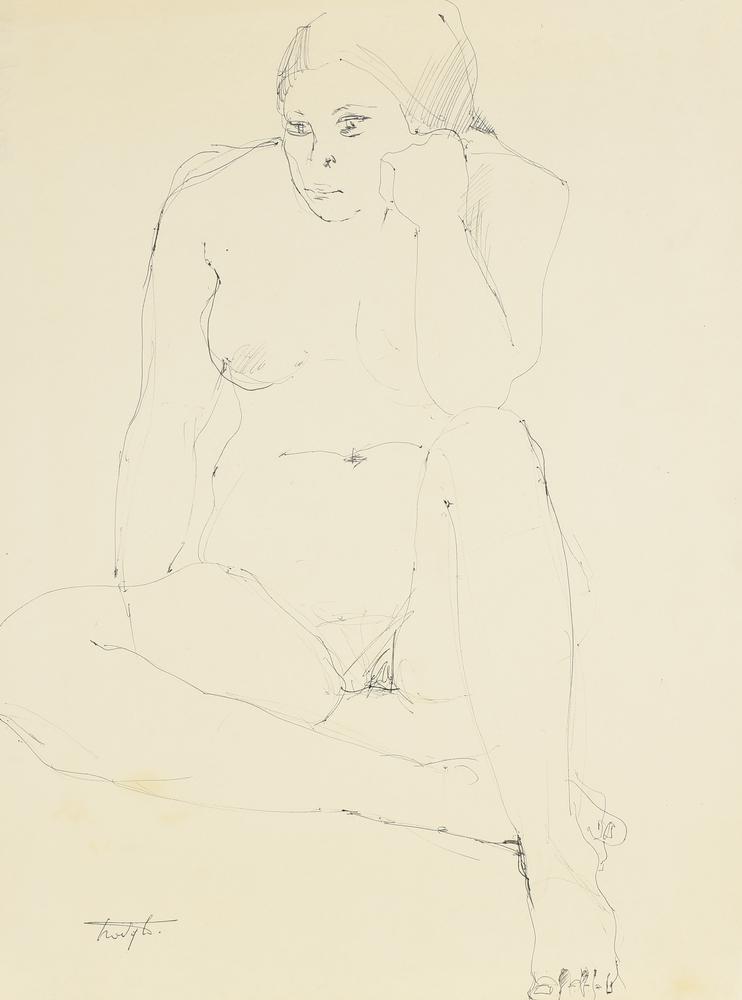 Sebastiano Trovato NUDO SEDUTO china su carta, cm 50x37,5 firma L'opera...