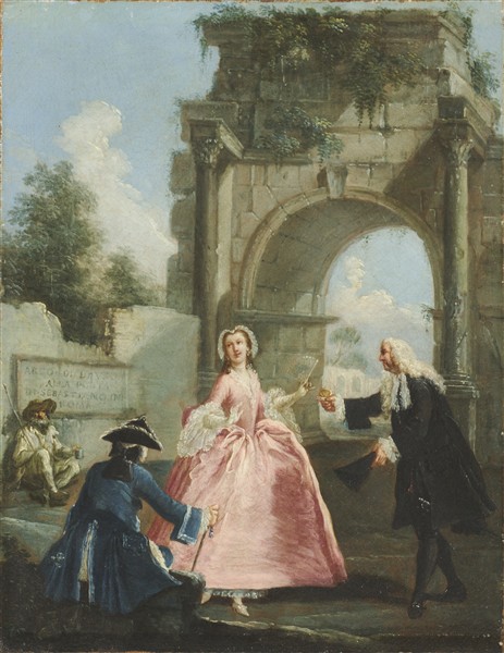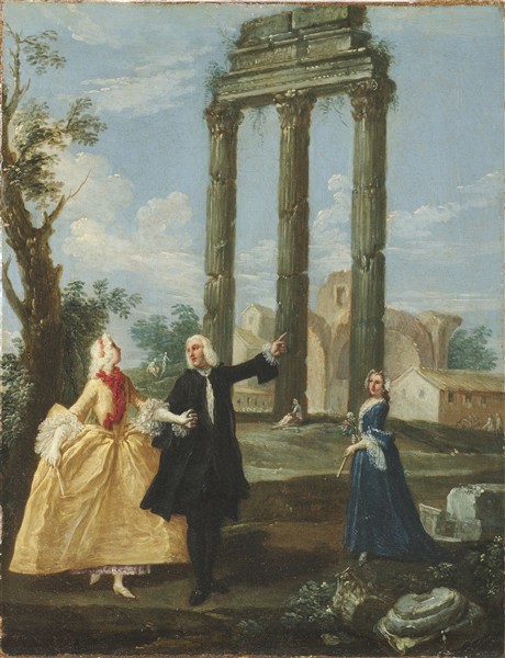 "Noble Persons Visiting the Roman Forum" and "Noble Persons and a Beggar at the Arch of Drusus"