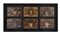 Arte napoletana del secolo XVII. Monogrammista VBL (attr) Gruppo di sei placche in vetro eglomizzato raffiguranti volti coronati di elmi e d'alloro entro cartigli circondati da trionfi (cm 13x8) montate in un'unica cornice moderna ebanizzata (cm tot 50x25) (difetti, mancanze, restauri)