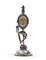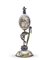 Orologio da scrivania in bronzo e smalti policromi con cassa sagomata in foggia di airone, parte superiore ovale decorata da scena galante. Quadrante a finte cartouches a numeri romani, movimento solo tempo (h. cm 13) (difetti)