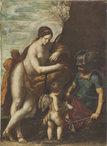 Giovanni Battista Paggi (attr.) "Educazione di Cupido" olio su tela (cm 128,5x9