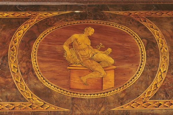 Workshop of Giuseppe Maggiolini, late 18th century. A venereed and inlaid poplar wooden desk (cm 128x112x64) (defects)