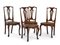 Gruppo di quattro sedie in noce con schienale a giorno decorato a volute con ca