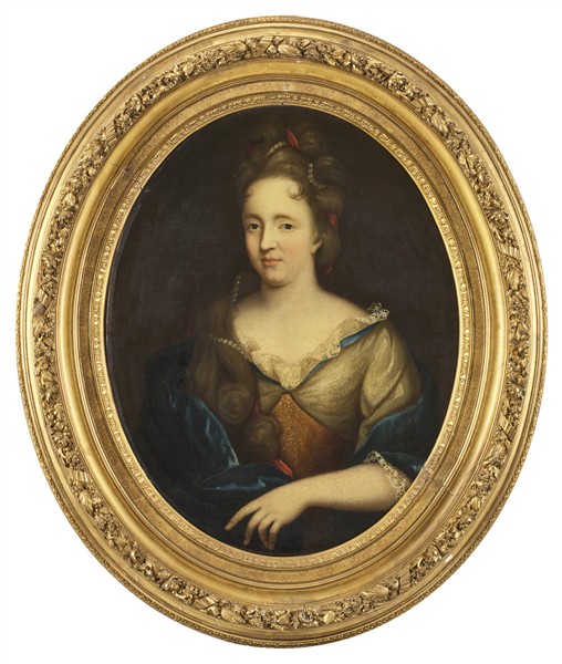 Scuola francese della fine del secolo XVII "Ritratto di dama con perle" olio s