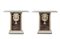 Coppia di console in marmi vari, sostegni a plinto decorati da volti muliebri s