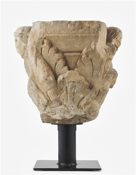 Art of the 12th-13th century. Marble capital carved to religious figures and warriors (h. cm 30) support with base of later era (defects and losses)