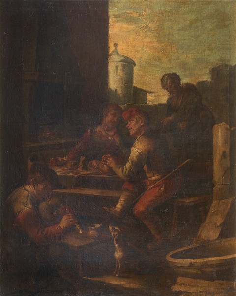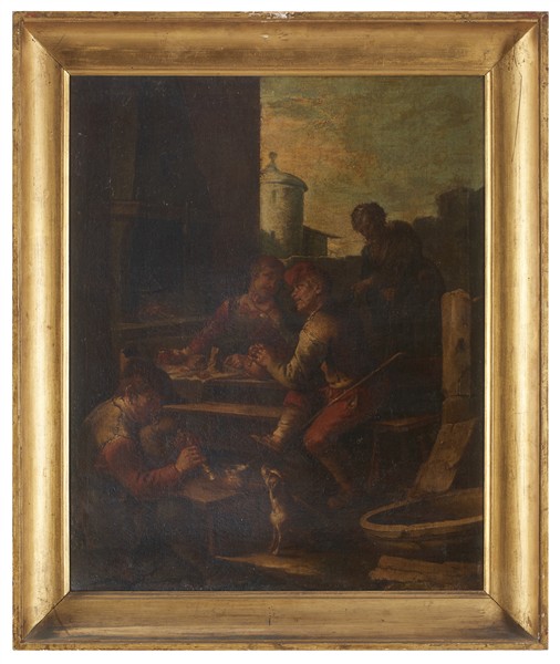 Maestro lombardo del secolo XVIII "Il pranzo galante all'osteria con suonatori