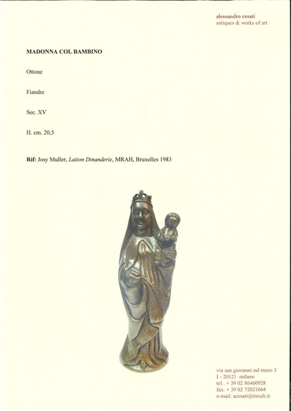 Arte fiamminga, secolo XV. "Madonna col Bambino", scultura in ottone a tutto to