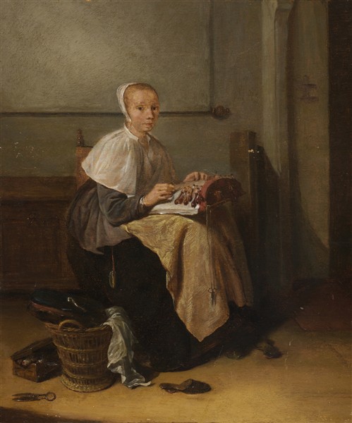 Lot 248 | Scuola fiamminga della metà del secolo XVII "Filatrice" olio su tavola (cm 36,