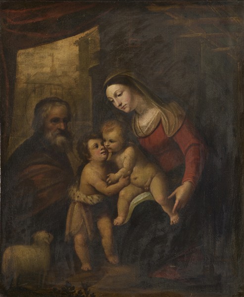 Maestro lombardo del secolo XVII "Sacra Famiglia con san Giovannino" olio su t
